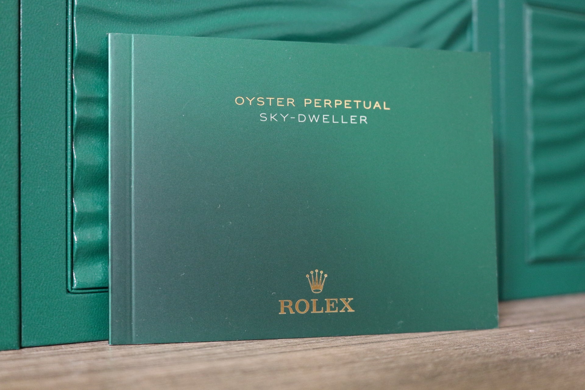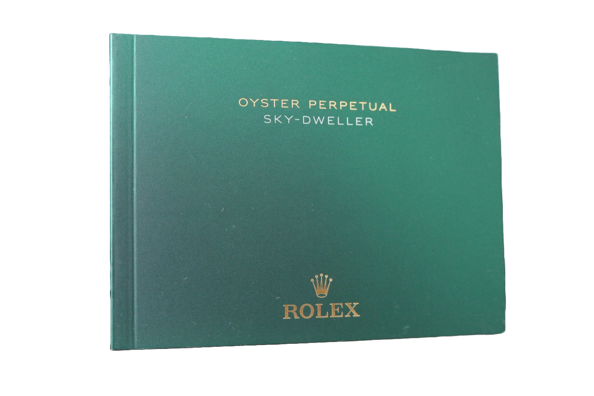 Neue englischsprachige Gebrauchsanleitung für die Rolex Sky-Dweller. Das Booklet enthält alle notwendigen Informationen zur Bedienung und Pflege der Uhr. Perfekt für Sammler und Uhrenliebhaber.